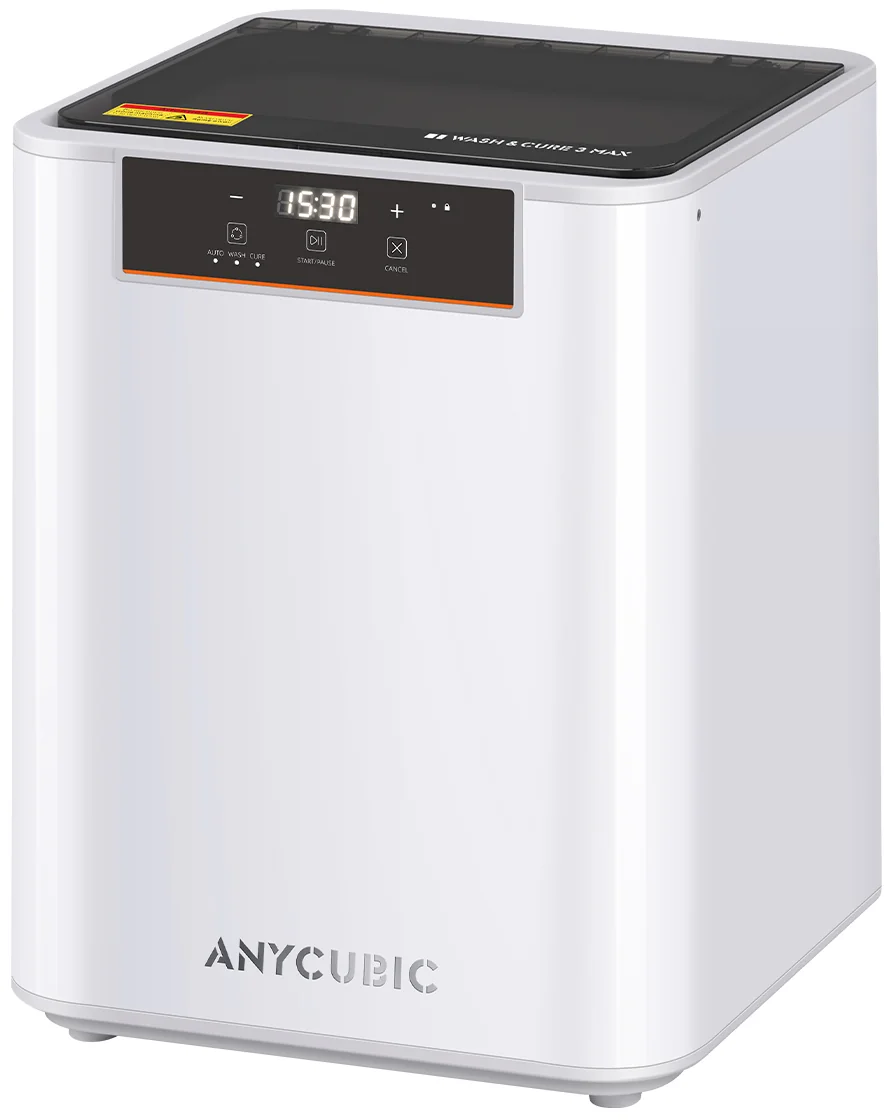 Met de Anycubic Wash & Cure 3 Max krijg je de grootste en krachtigste alles-in-één oplossing voor resin-prints tot nu toe. Dankzij een reinigingscapaciteit van 305 x 165 x 300 mm biedt het 98,55% meer volume dan de Wash & Cure 3 Plus en is daarom perfect voor grootformaat modellen of meerdere prints tegelijk.