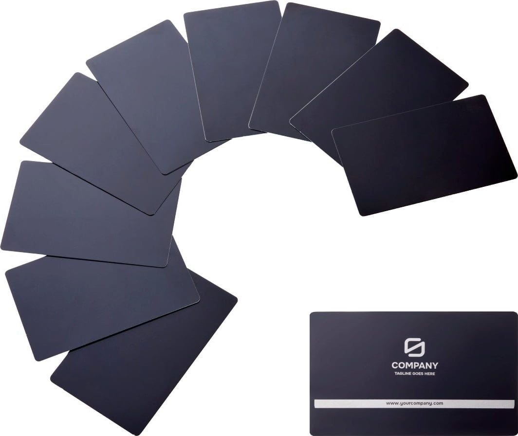 De levering bevat 10 Aluminium Office Cards (86 x 54 mm).