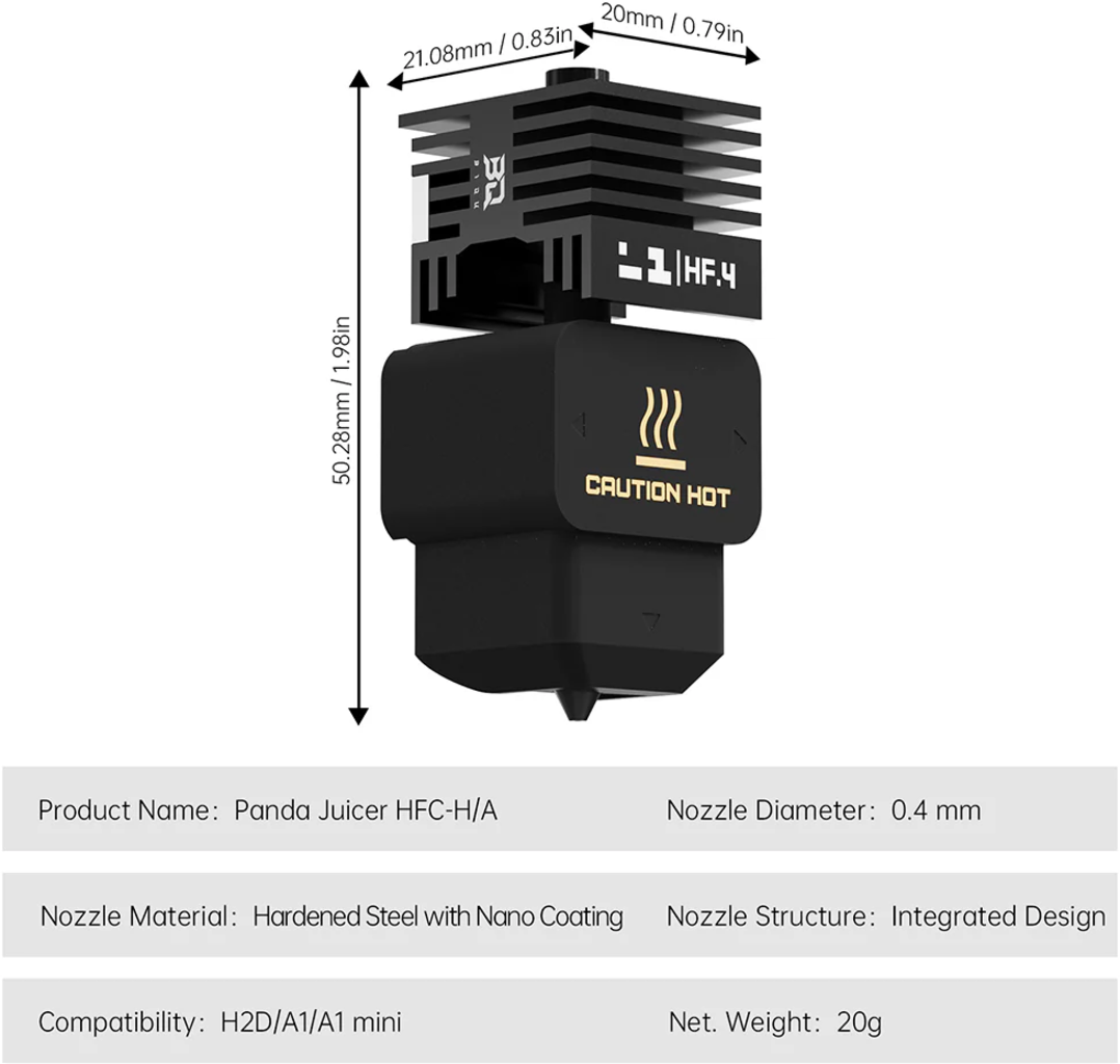 BIQU Panda Juicer Hotend HFC - H/A, Bambu Lab H2D/A1/A1 mini