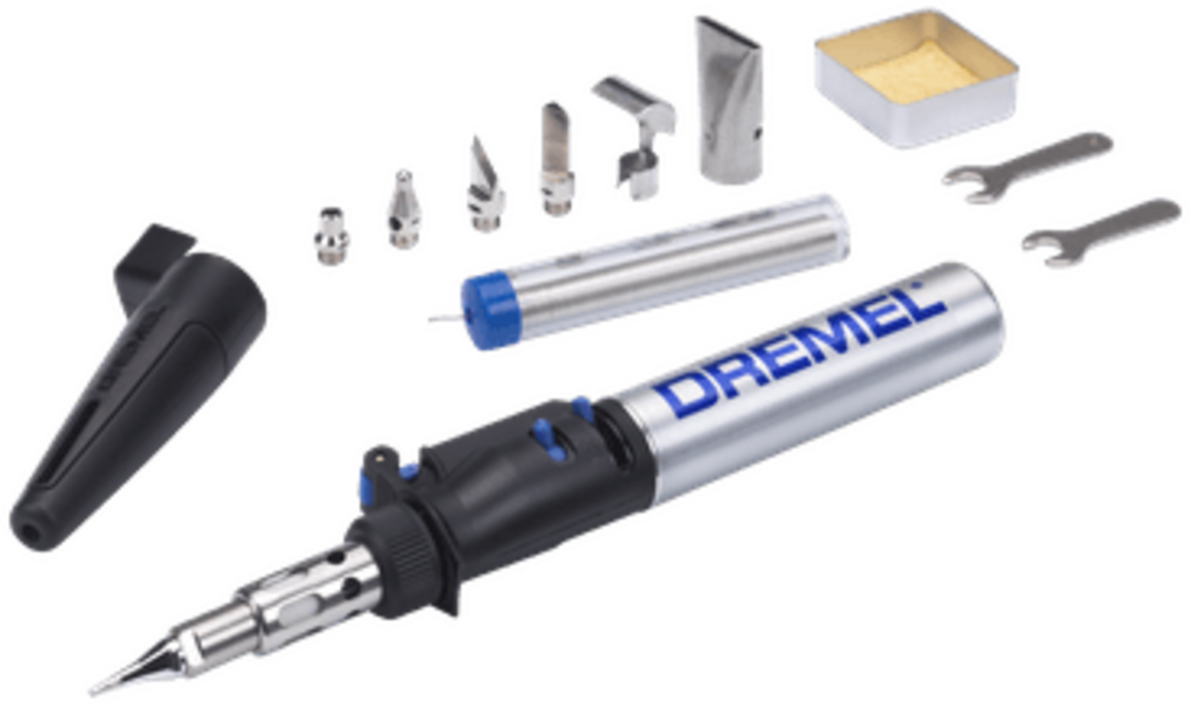 De Dremel Versatip is een snoerloze gassoldeerbout die werkt op vloeibaar butaangas. De veelzijdige soldeerbout wordt gebruikt voor precisie- en detailwerk, waaronder solderen, heet snijden en stempelen, lassen, brandmerken en verf verwijderen.