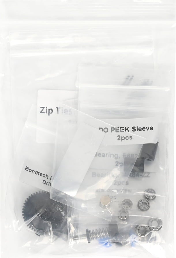 ► Let op: De geprinte onderdelen zijn al inbegrepen bij de Assembled Version van deze extruder. Voor de kit moet je sommige onderdelen zelf printen.