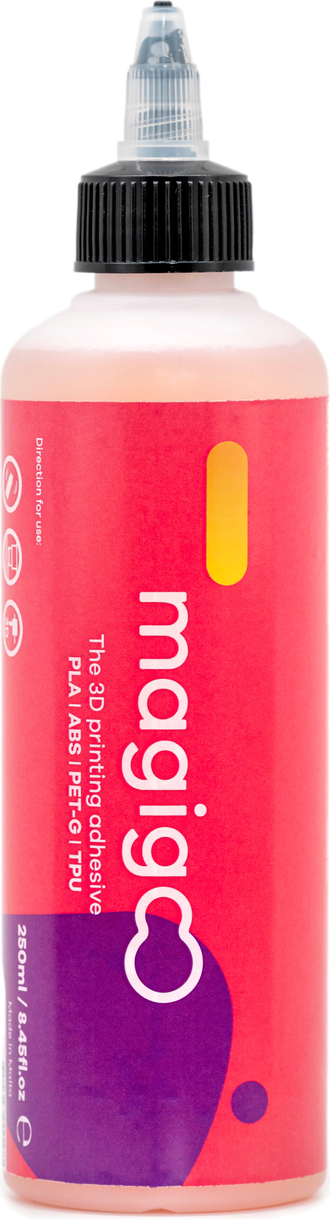 Magigoo Glide Original is een printbedlijm die speciaal is ontwikkeld voor grote printoppervlakken en grote printvolumes. De formule van de lijm is ontworpen om kromtrekken te verminderen, de processtabiliteit te verhogen en reproduceerbare hechting over het hele printgebied te garanderen.
