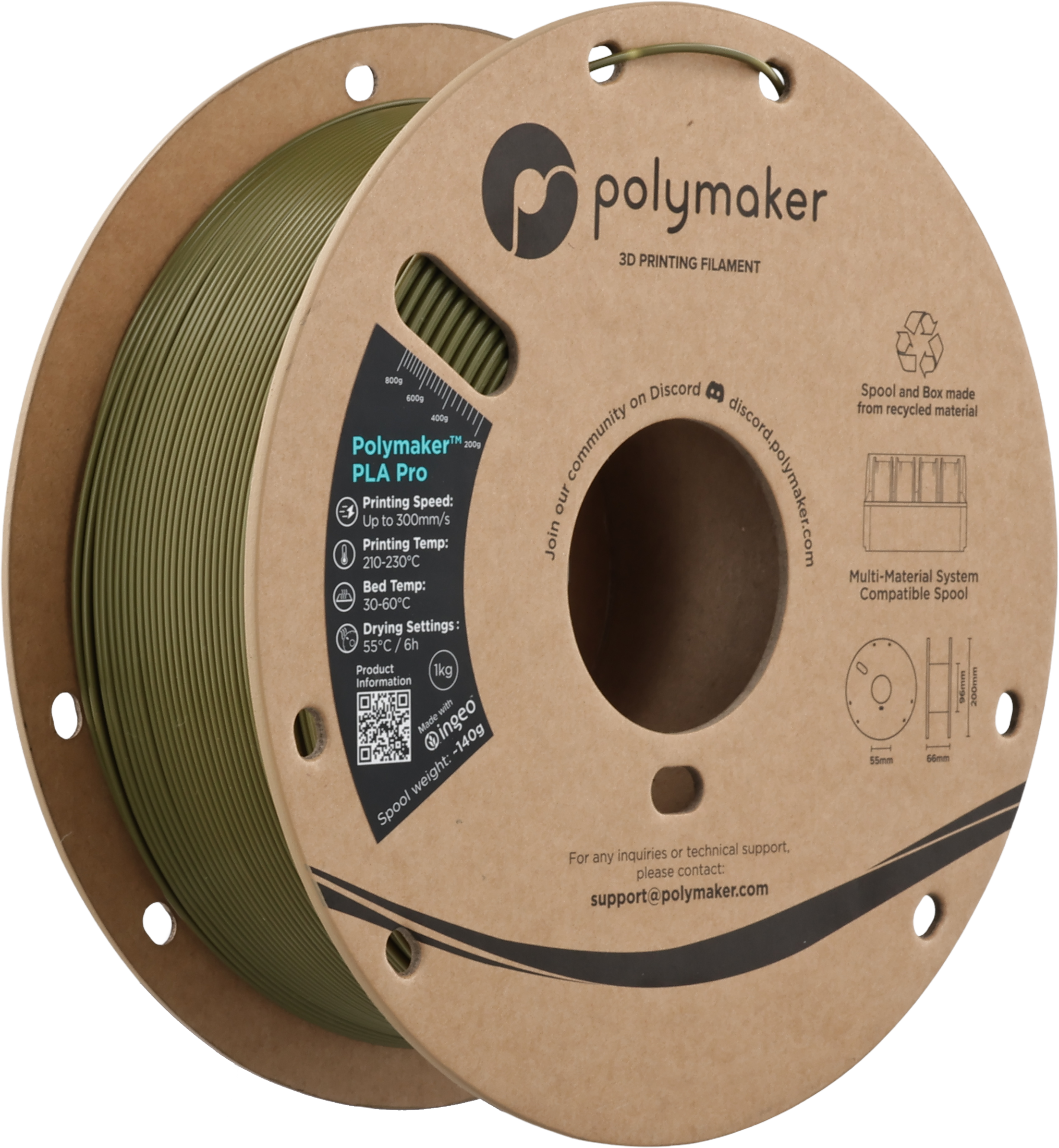 Polymaker PLA Pro Army Green, 1,75 mm / 1000 g