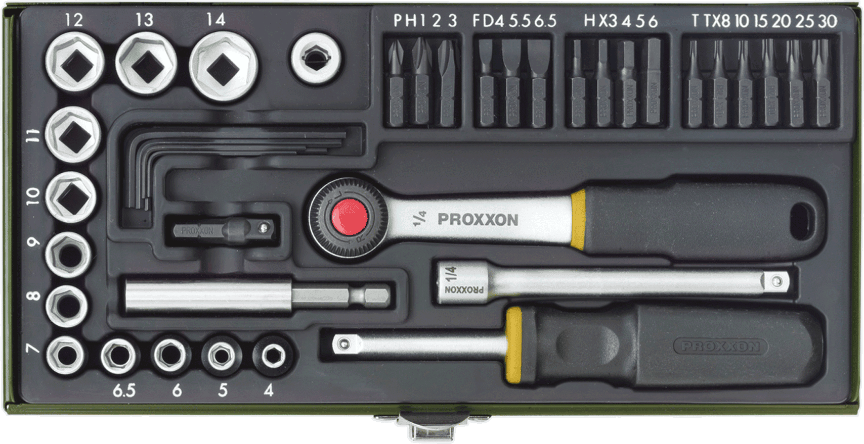 PROXXON Schroef Set met 1/4"-Ratel en Magneethouder, 39-delig