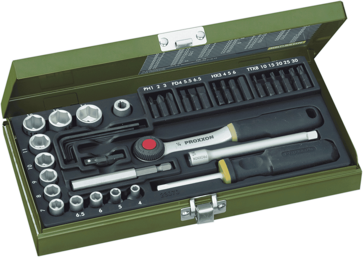 PROXXON Schroef Set met 1/4"-Ratel en Magneethouder, 39-delig