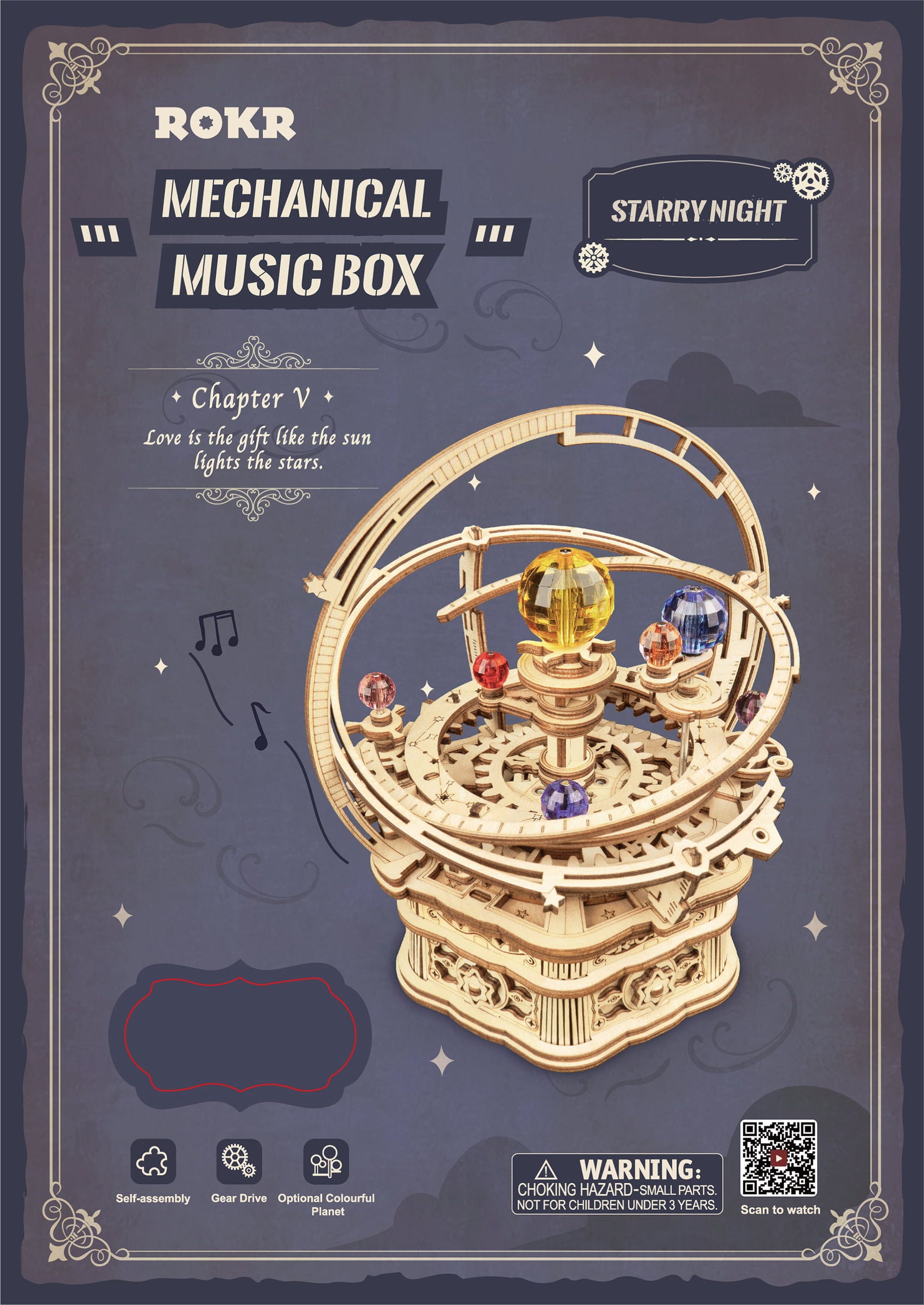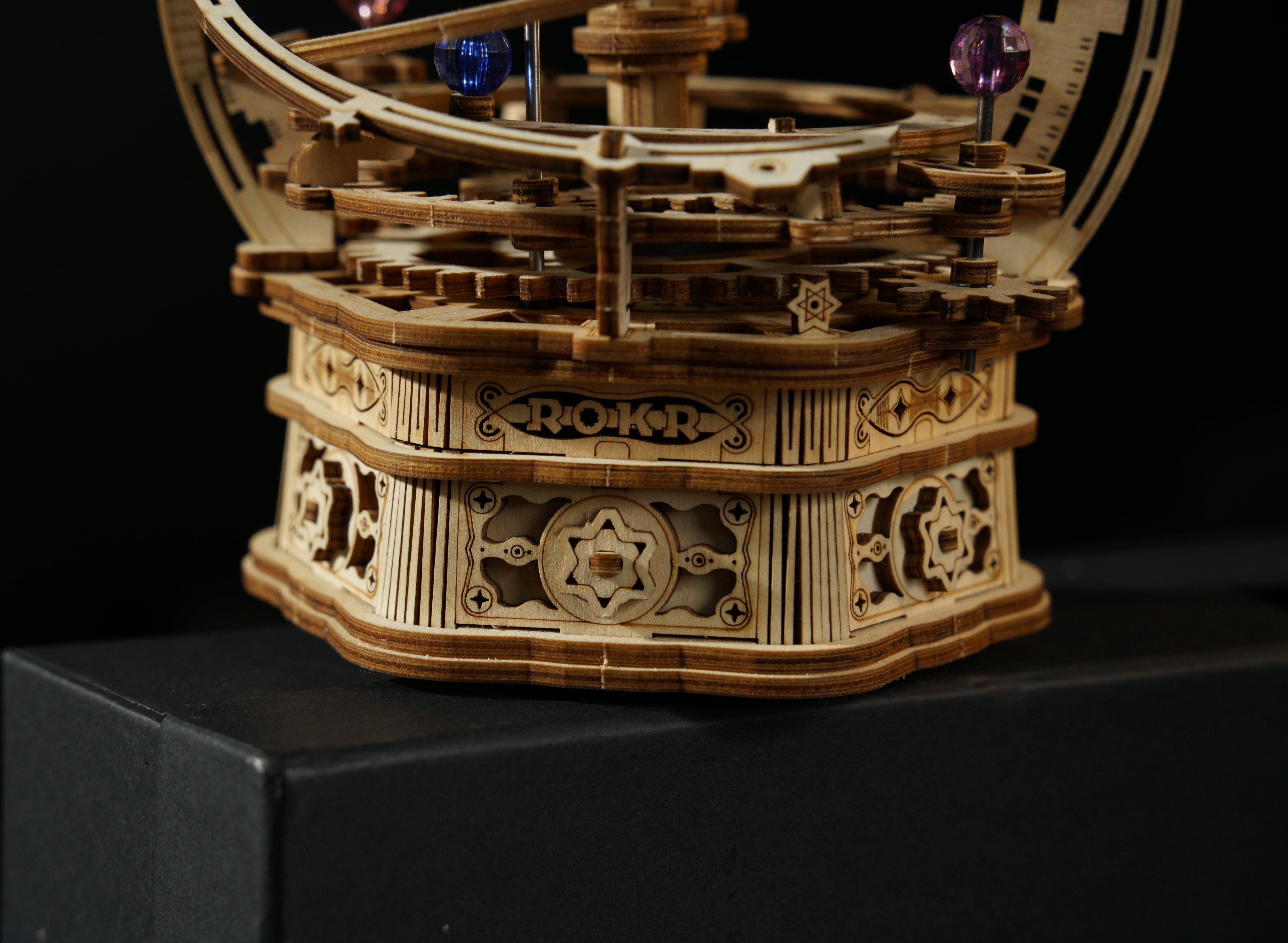 ROKR Starry Night is een mechanische muziekdoos en houten 3D-puzzel die je meeneemt naar het hart van ons zonnestelsel. Geïnspireerd op het model van de planetenbanen, toont dit buitengewone bouwproject de relatieve posities en bewegingen van planeten en manen – niet als een droge grafiek, maar als een levendige, mechanische choreografie.