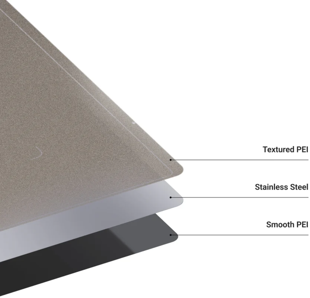 De PEI-zijde met textuur biedt een uitstekende hechting voor grote, complexe of functionele prints, terwijl de gladde zijde perfect is voor kleine tot middelgrote modellen met een vlekkeloos oppervlak.